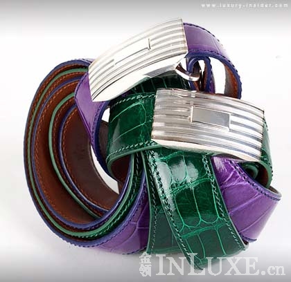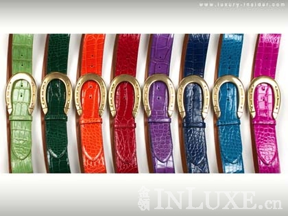 男士时尚方面,今年的一款天鹅绒男式拖鞋非常吸引眼球,为骑士风格图案的绣花设计,还有一个以紫色和橙色为主色调的鳄鱼皮腰带系列,应用了流行的搭扣设计。