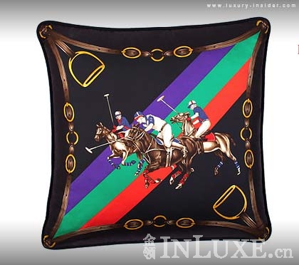 来介绍一些今年的精选系列中比较特别的产品,有如其中一款枕头和毯子的床上套装,其中的一款开司米枕头为马球主题的设计(795美元),而与之配套的绒面革开司米毯子(995美元)也别具一格。