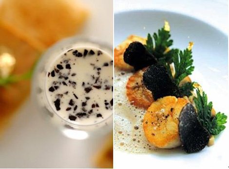 奶油白豆黑松露汤:将白豆打成酱状,加入特质的菌菇,融入奶油,在上面撒上黑松露。鲜美可口,奶喂浓郁的奶油白豆黑松露汤也是厨师的特别推荐。
