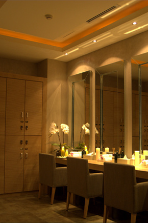 还很注重提供客人们相遇交流、建立联系的需求,在男女宾的更衣室之间,设计了共用的休息区,结伴而来的情侣、夫妇或是朋友,可在疗程开始之前,补充一些水份、看一会儿电视。女宾专用休息区的设计则很有英伦风格,宽厚的躺椅上准备了花茶、水果以及点心,给女友们无穷无尽的私房话以足够的空间。当然,在水疗中心宽敞的桑拿和按摩浴池等公共设施,也非常适合消磨时光,放松身心。