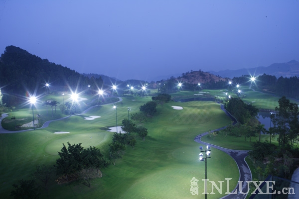 夜色灯光下的高尔夫球场