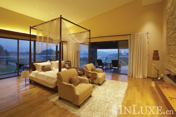别墅面积从366平方米到2,668平方米不等,都很好地融合了室内空间与外部球场的如画风景,落地窗的采用与中国传统围合式的设计在提供无碍景观的同时也保证了居住的私密性。