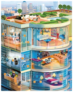 不可否认的是,如果选购得当,摆放合理的话,它们在提高你的家庭品位的同时,也可以让来到家中的客人眼前一亮。近日,英国《每日邮报》就组织了一批建筑师和时尚潮流达人一起设计未来的高科技生活,他们根据家庭中不同的功能区的设计,再充分结合现有的高科技产品的特点,在让它们物尽其用之余,也让人充分享受现代生活。