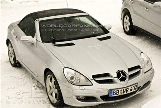 如果按照照片来看,新车的推出应该不会太久。但是细细观察之下我们就能发现,恐怕并没有我们相像的那么乐观。照片中这一款SLK轿车并不是奔驰亮相日内瓦车展的09款SLK,这一点从前进气格栅的造型上就可以证明。