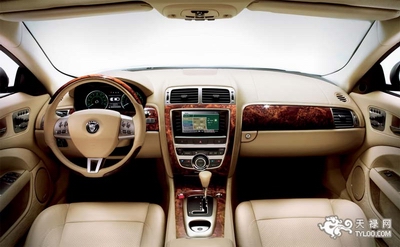 如果你认为XK的外观无可挑剔,那么它的内饰应该也不会令你失望。捷豹XK的内饰给人以强烈的视觉冲击力,所有用料均极尽豪华,于每个细微之处都在渲染着华贵奢侈的气氛。这一款XK敞篷采用了浅黄色内饰搭配胡桃木的装饰,与一般跑车强调科技与运动感的路线不同,捷豹XK似乎更在乎华丽与舒适的体验,打定主意要将英国式的高贵进行到底。金属抛光面板,与各种镀铬装饰,让中控及按键看上去美仑美奂得让人难以置信。车顶与车门板下部的均采用的是短羊毛材质,触感柔和。细孔真皮包裹着不仅仅是座椅,还包括中控台、车门内板、方向盘、中央扶手等处,缝工细致一流。