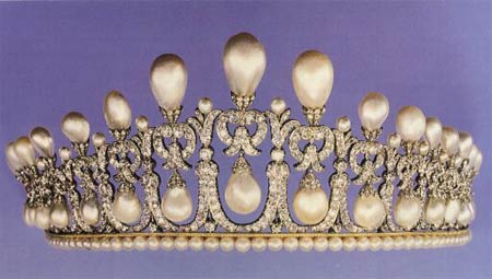 1825年,当时的巴伐利亚国王路德维希一世的儿子、日后承继了希腊国王王位的奥托为自己的妻子阿玛丽亚定做了一顶王冠。然而没多久,国王就得了重度精神病,都无法自理。可怜的希腊王后难以接受这个残酷的事实,终日以泪洗面。这顶饱含国王爱意的王冠也因为王后的忧郁而得到了一个充满悲情色彩的名字:珍珠泪。