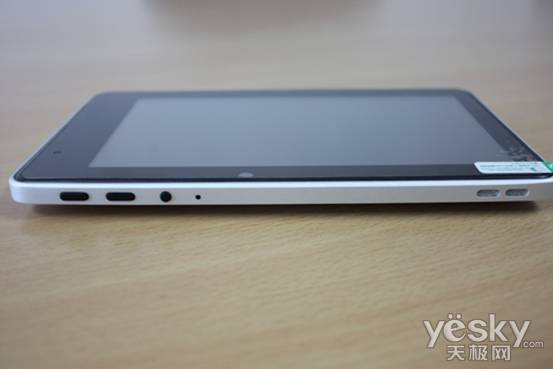 侧面 从左至右分别是标准USB接口、迷你usb接口(支持充电)、电源接口、3.5mm音频接口、HDMI接口,TF读卡插槽。