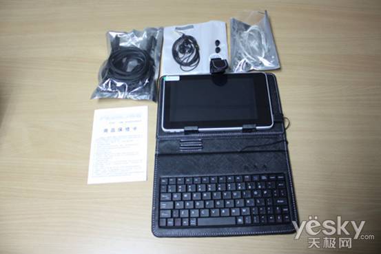 配件,标配有5V(2000毫安)3C充电器、入耳式仿苹果4代耳机、usb电脑连接线、说明书、保修卡、布绒保护套,usb键盘+皮套和hdmi线是选配件。