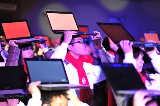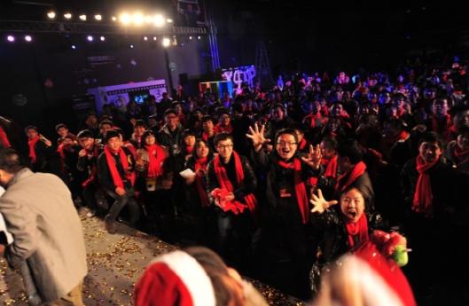 劲爆的节奏,舞动的彩棒,当“5,4,3,2,1”的倒计时伴随现场的欢呼声结束,一块显示着“彪悍的小y,机皇驾到”的超大屏幕出现在观众面前。300名“Y粉”头顶联想“彪悍的小y”粉墨亮相,组成了史上最大的LED笔记本大屏,这就是“彪悍机皇,领航未来”——联想ideapad Y470P圣诞赏新汇的现场。新一代性能机皇Y470P携全球首款AMD 7系显卡,以别开生面的方式,极具冲击的视觉效果震撼登顶,现场狂热的小y粉丝纷纷膜拜,迎接新一代14寸性能机皇的到来。