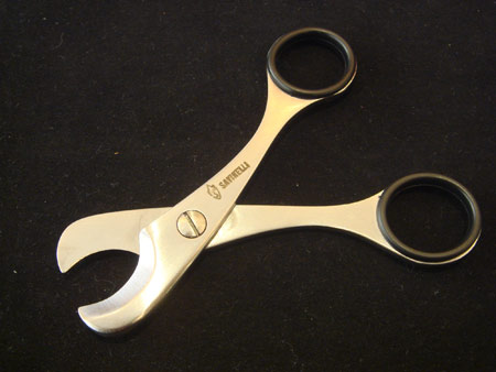 史前世纪,我们祖先在黑暗中围坐在篝火旁。在阴暗的岩洞中享用过烤猛犸象肉之后,他们开始抽自己的大雪茄。粗粗的雪茄烟被夹在手爪中并用嘴咬去头部一端。他们将雪茄烟帽吐到篝火中,随之打了一个很响的嗝。他们用巨大的手爪紧紧钳住雪茄,猛地将毛脸靠近火堆,并在点燃雪茄烟的那一瞬间发出响亮的吮吸声。长长的毛发尖端被烧焦了,眼睛也被呛的发红流泪,但他们确实是在抽雪茄。 幸运的是新石器时代已经过去,社会文明的进步为我们剪裁与点燃雪茄提供了一整套用具,雪茄剪刀是其中一种,用来剪裁雪茄头部……