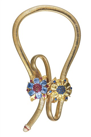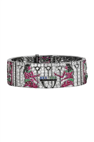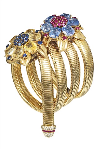 黄金、玫瑰金及绿哑金,隐密式镶嵌蓝宝石、隐密式镶嵌红宝石及钻石,1938年