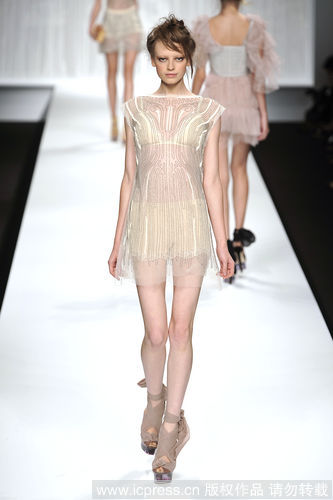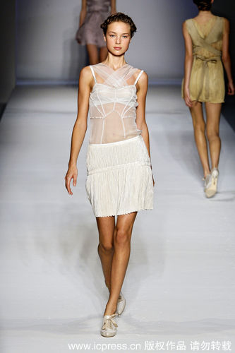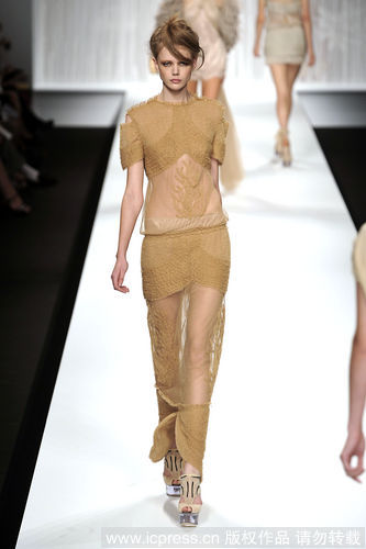 “性感”一词在10春夏有了新的解释,因为一些新性感元素的出现和运用,50%不透明面料和透明面料的混搭剪裁,完全摆脱“只是面料薄导致走光”的印象,如搭配抹胸等打底衣,普通人也可以在炎夏尝试。