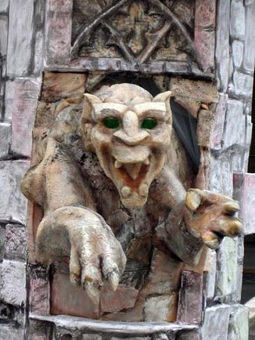 墙上的怪兽雕塑。看似与色彩并无太多的关联,只是简单的石色,不过,破窗而出的瞬间,怪兽眼中无比强烈的黑,足以让人震撼。