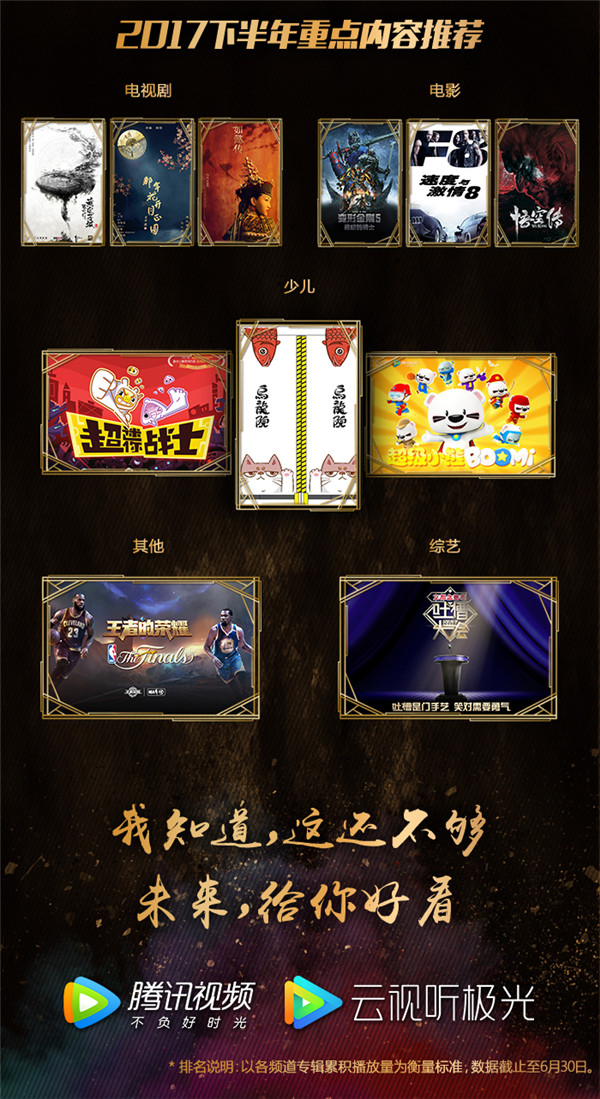 如今越来越多的家庭开始回归客厅,用电视大屏和企鹅极光盒子观看云视听极光精彩内容成为众多家庭必不可少的娱乐活动之一。随着暑期档的到来,下半年的精彩内容也拉开了大幕。去年底腾讯视频自制精品网剧《鬼吹灯之精绝古城》获得了高人气的点击量,热度一直延续到年初,而它的续篇《鬼吹灯之黄皮子坟》也即将强势上线。与此同时,实力派演员周迅时隔多年再登荧屏的大热剧《如懿传》、娘娘孙俪领衔主演的《那年花开月正圆》、院线正热映的《变形金刚5》以及即将在院线上映的大片《悟空传》等都会在下半年的云视听极光与广大观众见面,敬请期待!