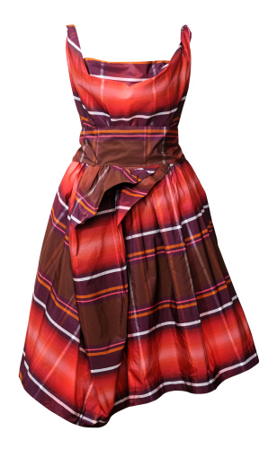 Anglomania是知名时尚品牌Vivienne Westwood 旗下支线。Anglomania素来以“金牌的年青版”见称,可说是韦斯特伍德三十多年设计生涯的结晶。而本季的初秋系列除继续把天桥上的大胆设计变得更平易近人外,更可说是来季意念的率先预览。 Vivienne Westwood 的拿手好戏Tartan格子跟希腊风格的Draping与阔条子当然少不了,Trompe L’Oeil错视印花亦是这个系列的重点设计:一株株镶上宝石的花枝,立体的笔触加上夺目的撞色设计,以假乱真的图案让衣裙添上几分异国风情,仿佛寓言着反叛的西太后来季将为我们带来一个色彩斑斓的冬日。