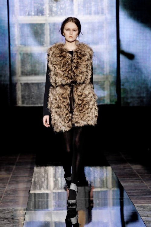 搭配基本款的长袖T或针织衫,下身搭配legging或紧身裤。摩登而高调的皮草马甲,绝对让你出尽风头。