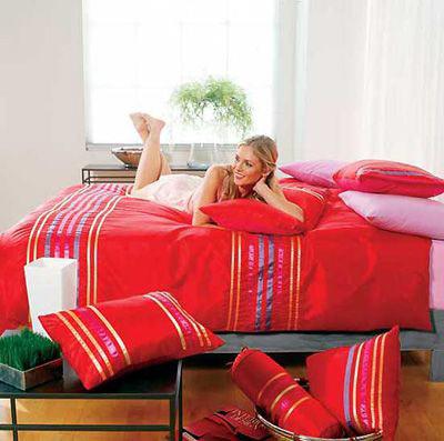 快乐的感觉来源于红白两色的和谐搭配,纯棉的质地让你的床充满阳光的温暖。