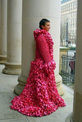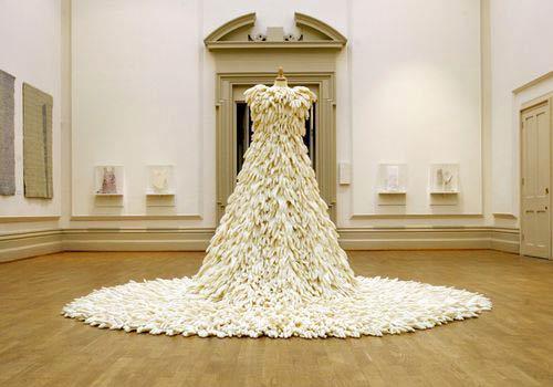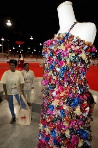 这是一个需要想象力和创造力的时代,美女们什么都敢往身上穿。有的穿着纯用黄金、铂金打造的高贵礼服,有的穿着用千片孔雀羽、千多玫瑰花制作的只有童话中才会出现的梦幻婚纱,有的美女甚至敢穿用套套做成的时尚服装。