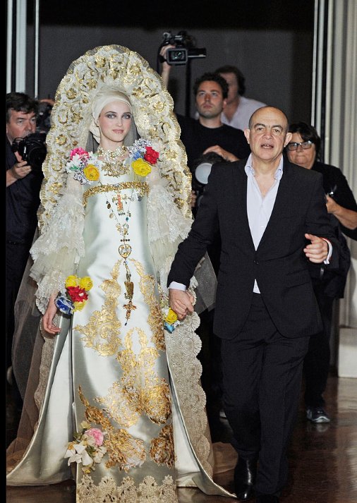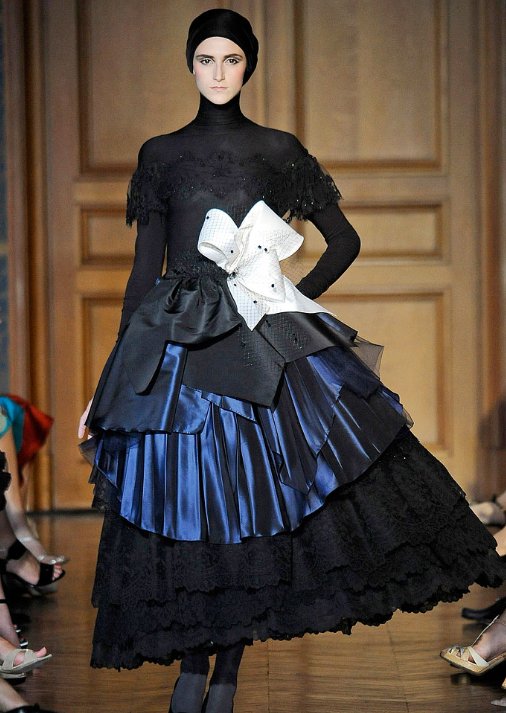 这是Christian Lacroix最后一次秀了,他并没有选择简约的设计,而是一如既往的坚持他华丽的风格,谢幕时他说:“我没想哭,”在热烈的掌声中,我们听到“我想继续下去,也许在另一种不同的方法,用一个小的工作室。我真正关心的是女人做这份工作。”