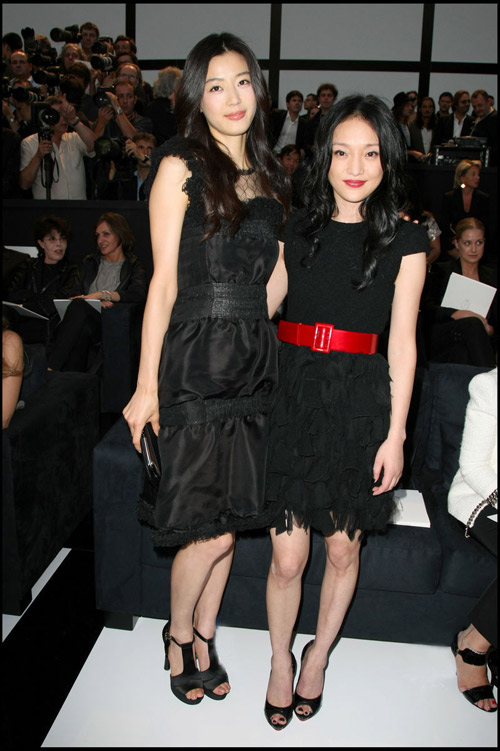 全智贤与周迅都选择了黑色礼服出席Chanel2009秋冬高级时装秀
