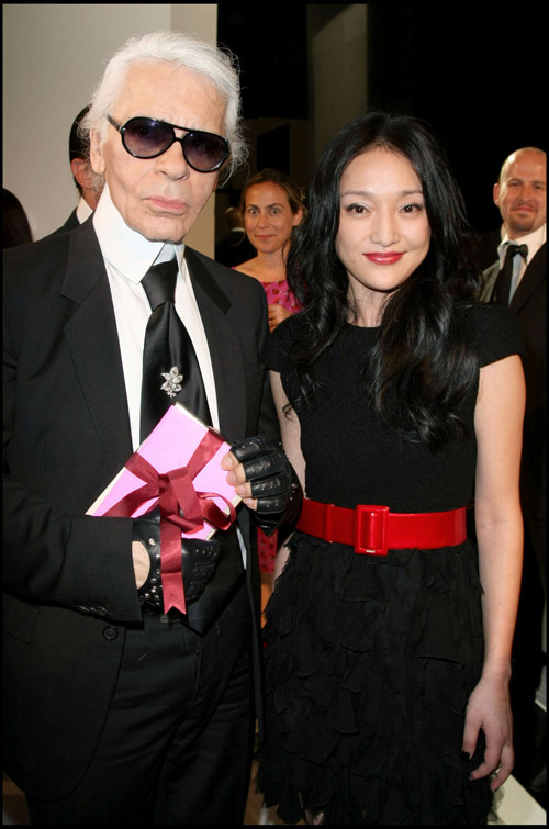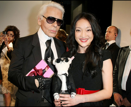 与老佛爷卡尔-拉格菲尔德(Karl Lagerfeld)亲密合影