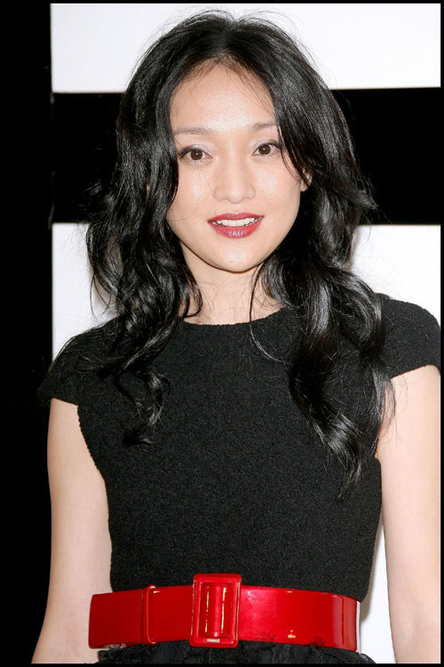 周迅虽然也是一身黑装扮,不过腰间的红色漆皮腰带成为整套装束的亮点