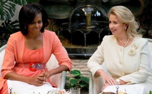 奥巴马夫人米歇尔凭随和而迷人的风采在美国和欧洲赢得喝彩,米歇尔曾经博得英国女王的欢心,与模特出身的法国“第一夫人”布吕尼不相上下。但在要求女性保守低调的俄国社会,是否能够得到俄罗斯人的欣赏颇成疑问。