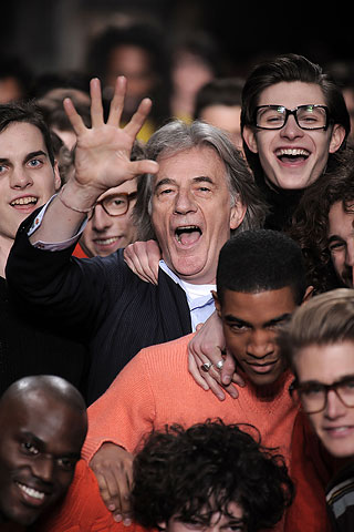但是Smith通晓太多的时尚语言以至于不能在一个题材里全面展现,所以他将不同的花格图案混融在同一套服装里,或者用令人亲切的斜纹图案来展示夹克来达成从城市到乡村的融合。还有褐色的灯芯绒夹克,衬里采用了大红色来点缀。而由于整体的经济环境不容乐观,老Paul强调了这个系列中配件的重要性,算是给想要进入Paul先生的世界的消费者们一个低门槛。本季的鞋款的确非常出色,特别是一双布满灰尘的粉色切尔西皮鞋。
