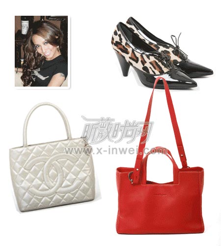 图中包括: FENDI豹纹高跟鞋,chanel复刻版手提包以及Ferragamo红色手提包