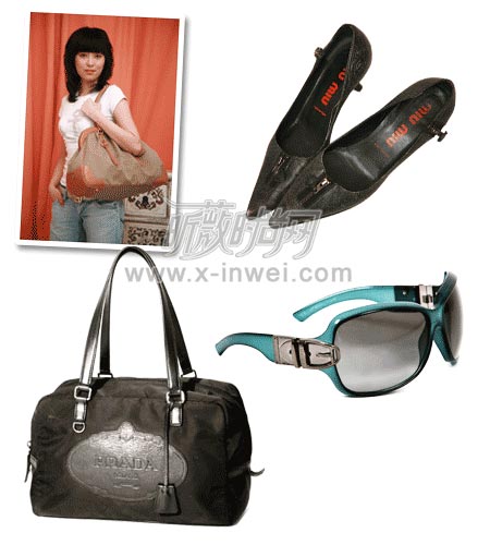 图中包括:PRADA手提包,miu miu鞋子以及GUCCI太阳镜