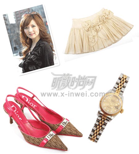 图中包括:第一件奢侈品---rolex手表,chloe短裙以及Dior高跟鞋
