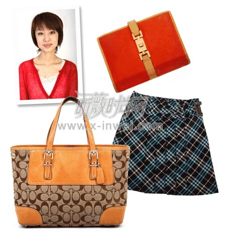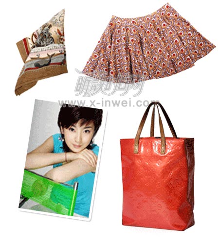 图中包括:miu miu短裙,Hermes丝巾以及 LV红色手提包