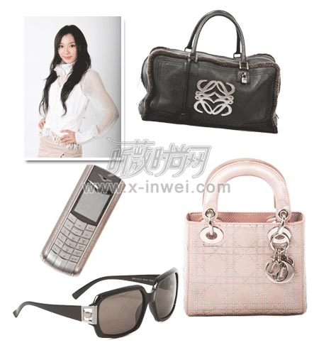 图中包括:Vertu手机, LOEWE经典手提包,Versace太阳镜以及Dior限量版手提包