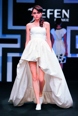 A这个真的很重要,虽然一场秀并不能代表什么,但是毕竟这是一种暗示,也是一种文化的突破,中国设计师站到国际舞台,继而他们会想:那会不会有打入国际市场的举措?是的,这个是我们下一步主要努力的方向。因为JEFEN已经和安娜·路易这个非常大的设计师品牌销售公司签约,代理我们除了中国内地之外的所有市场的发展,欧洲、日本,还有中国香港等等,这也是中国成衣第一次正规地走进高级流通渠道。