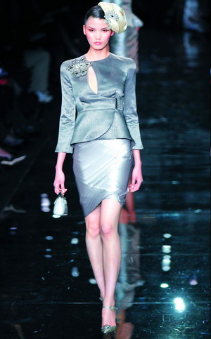 A差距其实是一直存在的。从大的方面说,我觉得最主要的就是重视程度的差异,比如他们的政府扶持力度要大一些,他们自己的品牌可以有机会到卢浮宫做发布,但是我们的设计师却不能到故宫博物院作秀。(在哪儿做发布这么重要吗?)当然很重要,这是一种象征和追求。还有小的方面,时尚的一大重要载体是模特,我觉得中国的模特在认可程度上就弱于外国。这还是一个大气候造成的,很多国外设计师不喜欢亚洲模特,包括很多日本的当红模特在国际上也没有太大牌,这和人们的思想观念有关系,就是认为欧洲模特好。所以我们的模特就要尽快做提升,这方面杜鹃甚至发展得比吕燕还要好,还有现在的莫万丹。