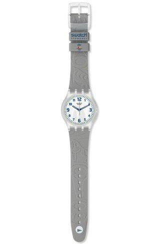 坚固的灰色腕带采用同色系浮雕设计,是西北太平洋原住民艺术中的标志形象。腕带配以两只灰色表环,一只带有2010温哥华冬奥会彩色会徽因纽素克(Inukshuk),另一只则饰以深蓝色斯沃琪通路(Snowpass)标志。下端表带上也配有灰底白色的通路(Snowpass)标志。透明的哑光表壳下,机芯清晰可见 。