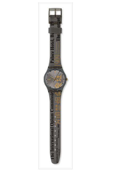 和平饭店 PEACE HOTEL 腕表专为纪念这一重要国际会议而设计,彰显出这座地标式饭店的深厚历史意义。这款独特的腕表采用透明灰色硅胶表带,印有黑色“The International Opium Commission”(万国禁烟会)、会议日期“February 1909”(1909年2月)和会议地点“Palace Hotel, Bund 19”(和平饭店,外滩19号)字样。表带6点侧印有金色汉字,顺着表带一直延伸至表盘,12点侧印有金色“1909”字样,犹如一本铭记历史时刻的书册;透明灰色塑料表扣,硅胶表环与透明灰色塑料表壳相互辉映;光亮磨光灰色表盘,配以表盘十二个小时刻度均点缀以黑色时标,饰以金色汉字及金色竖纹,极致流畅的线条突显出极具震撼的视觉冲击力。表盘上唯有金色时针和分针以及纤细的黑色秒针,简约却又不精准。这一款令人瞩目的和平饭店 PEACE HOTEL腕表,全球限量发售888枚。配以特制简约表套,由位于上海外滩19号,斯沃琪和平饭店艺术中心斯沃琪精品店独家发售。