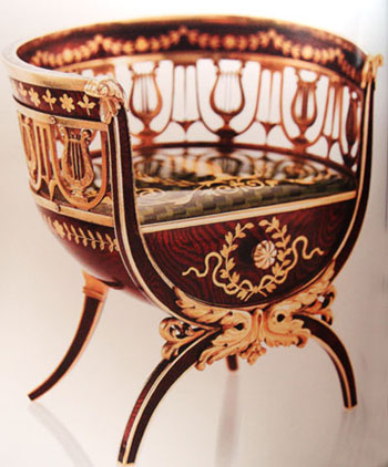 07年4月纽约索斯比(Sotheby''s)拍卖会上,一把只有手掌大小的微型椅子,飙到了150万美元,最便宜的一把也要100万美元,居然还有人捧场。想当年靠为沙皇亚历山大三世设计复活节彩蛋一举成名的Faberge听到这个价格,不知道会不会在坟墓里笑醒。