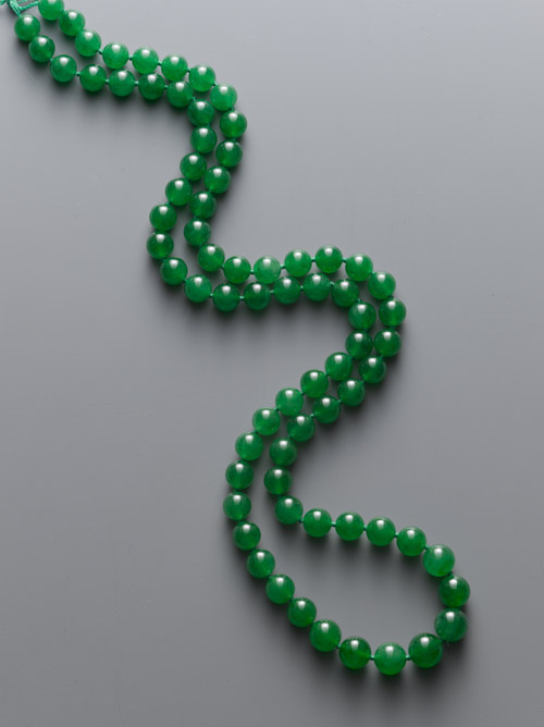 另外,需关注的还有一条翡翠珠链 (估价16,800,000-25,000,000港元)。翡翠珠链一直代表着收藏极品,颗粒完美均匀更是难得。此链的可贵之处是全部73珠颗粒,无论色泽及形状均呈完美,每颗珠子艳绿欲滴,玲珑剔透,更彰显其连城身价。