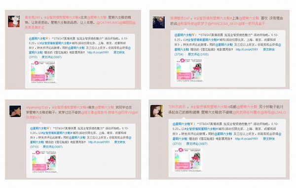 话音一落,可见深圳的童鞋相当给力,情绪相当高亢,除了踊跃参加到活动中来,还不忘表示对星期六女鞋的支持与关注,真是令人感动。