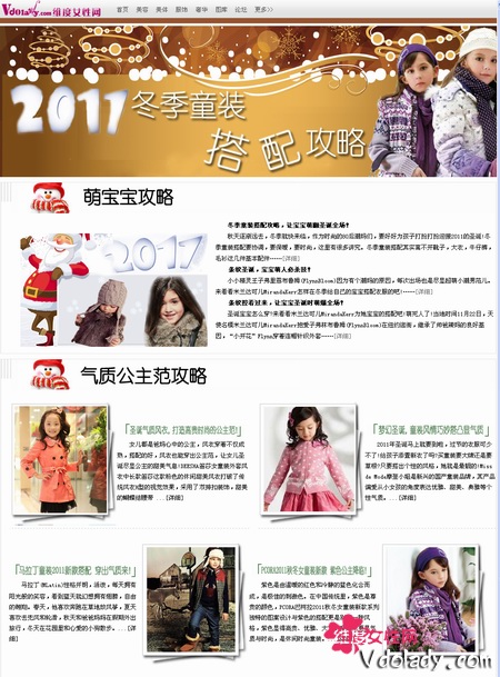 什么是女人一生的追求?答曰:孩子。让孩子健康长大是女人最大的责任,那么作为母亲的你,在这如此欢乐的日子里,难道就没有将孩子打扮的漂漂亮亮的欲望?小公主期待着邂逅她的小王子,“萌”,是今年一大主题,让孩子萌起来,是每个母亲的最大愿望。维度女性网圣诞亲子童装攻略现在就让你乐个够,搭配着最萌的小条纹,穿搭着最可爱的公主裙,小宝宝真正的童年,才真正的开始。(专题地址:http://baby.vdolady.com/special/arc-28885.html)