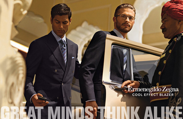 继08春夏在北京故宫拍摄大片之后,顶级男装品牌Ermenegildo Zegna 2009 年春夏广告选择在有着“粉红之城” 美誉的斋浦尔(Jaipur,印度拉贾斯坦邦Rajasthan 的首府)进行拍摄,而这也是第一个有机会在印度拍摄国际广告的男装奢侈品牌。