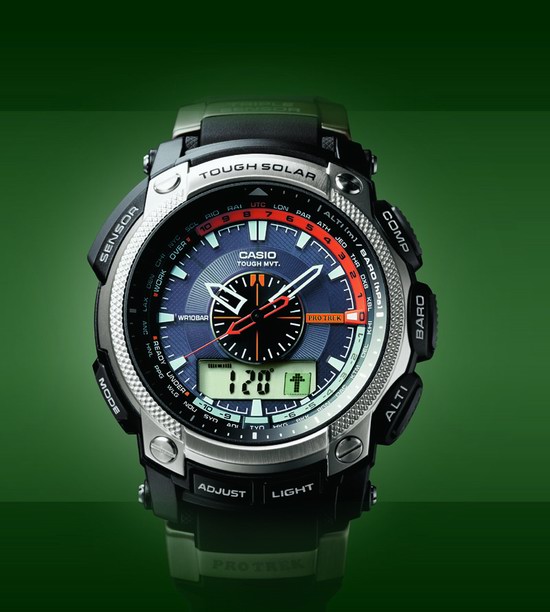卡西欧独创的6局电波接收功能以及太阳能驱动系统,自动接收时间精准对时,并且吸收太阳光足够环保,这对于喜欢户外探险的人来说,绝对的实用,无论你正跋涉在大自然的哪个位置,都可以获取精准的时间,勇往前行。