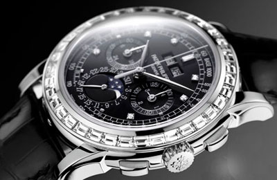 百达翡丽顶级女装表款——Ref.5971,经典导柱轮计时表+万年历功能+闪耀的钻石。