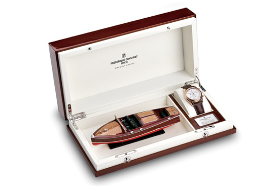 每一枚康斯登“Runabout ”腕表均配备一个手工制精美木盒盛载,并附有一艘限量生产的“Runabout ”彷真模型。