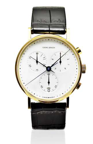 1978 年,汉宁古柏(Henning Koppel)突破窠臼,以‘点状刻度’取代传统阿拉伯数字计时法,创作出极具前卫风格的设计表款,从此他为乔治杰生手表开启了国际瞩目之窗。简约且大胆颠覆传统的表款设计, 不仅体现了蕴藏在GeorgJensen 品牌核心‘大胆简约,精致实用’的基本北欧精神,也继而影响Georg Jensen 后来的设计家手表风格。