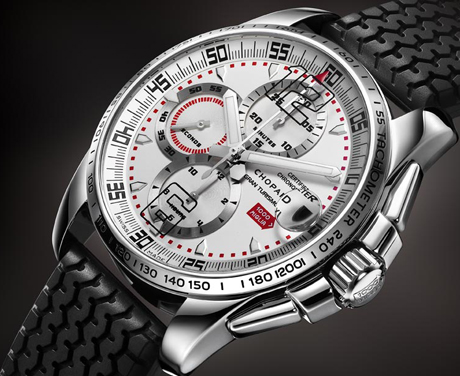 作为萧邦表引以为傲的标志性运动腕表,Mille Miglia系列腕表早已成为了世界上最著名的古董车大赛的象征。该系列腕表每年都会推出新款,向年度的同名古董车大赛致敬,2010年的新款Mille Miglia GT XL Chrono 2010计时腕表也不例外。腕表标志特色以Dunlop赛车轮胎花纹的天然橡胶表带,直径44毫米的精钢制表壳,澎湃动力则来自获得瑞士官方天文台(COSC)认证的自动上链精密计时机芯。