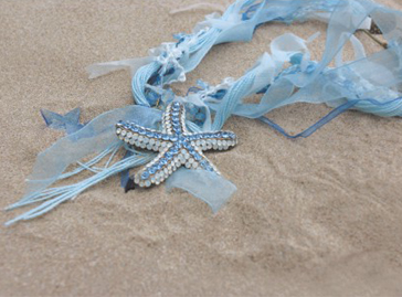 可爱的海螺、海星、贝壳、珊瑚、海马等海洋符号的点缀,荧亮稀有珍珠、闪耀水晶、镀金金属、半透明质感丝绸的完美结合,在体现Goessele对于奢华的时尚的观点的同时,也让每一个穿戴它的女生在酷热的夏日体验到蔚蓝海洋世界的清凉和独特乐趣。